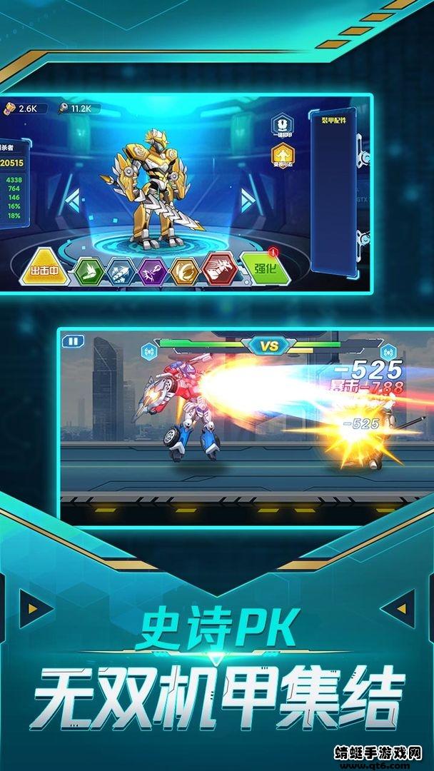战斗过程可以自由变换形态,同时可以升级组装机甲和机甲龙的组件,增加机甲的战斗和防御力,华丽的技能特效,体验拳拳到肉的打击感。