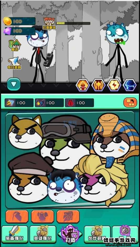 游戏玩法是塔防类型的,每秒会给你一定量的骨头,可以召唤狗子战斗。