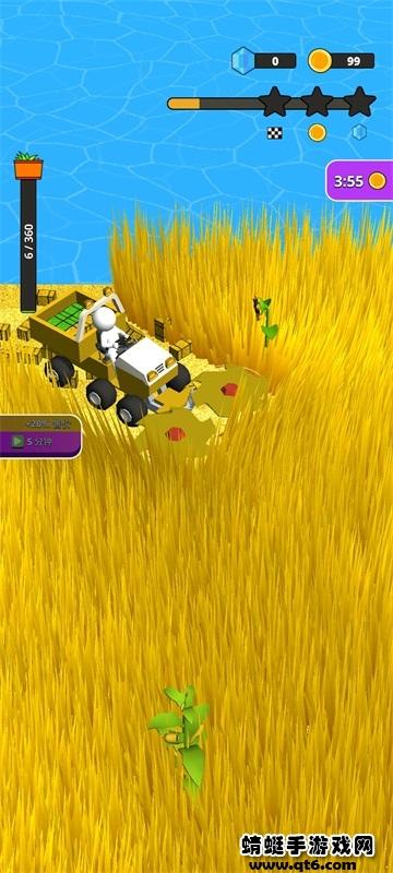 2、收集草并售卖,出售的金币用来升级你的装备,提高效率赚更多的钱;