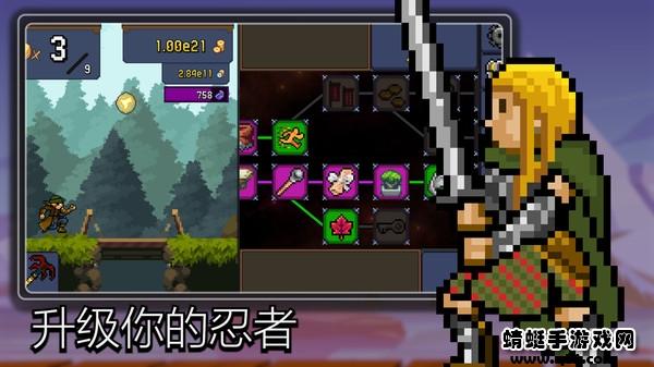 点击忍者是一款忍者题材的冒险手游,游戏采用像素的风格设计,操作非常简单,采用了点击式的操作方式,在这里你将化身为一名忍者,需要克服重重的障碍来进行冒险,让自己变得更加强大。