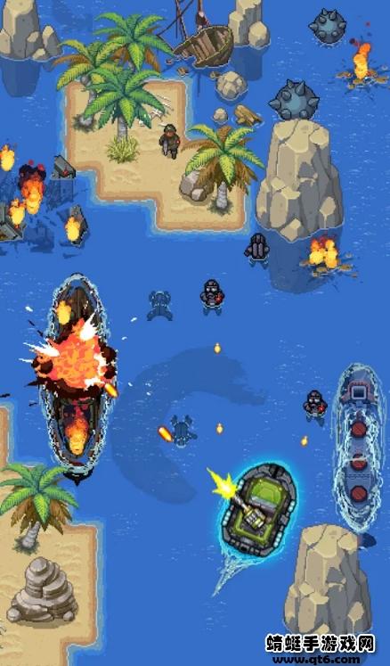 豺狼小队游戏采用了非常传统像素游戏画面,给玩家们在画面上带来轻松的卡通元素,你需要操控自己的车辆在这个残酷的战场上不断地进行冒险闯关,射击关卡中敌人的基地和战车,击败他们你可以获得更多的几笔和武装来让战车的火力变得更加猛烈。