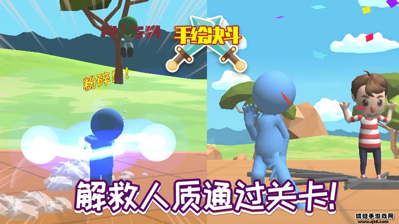 2、创意好玩的指尖乱斗冒险游戏,场景中你可以看到两个不同的小人对战的画面;