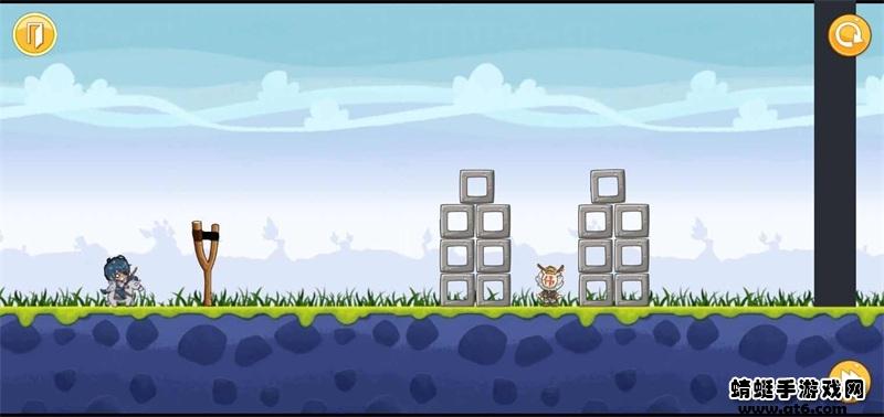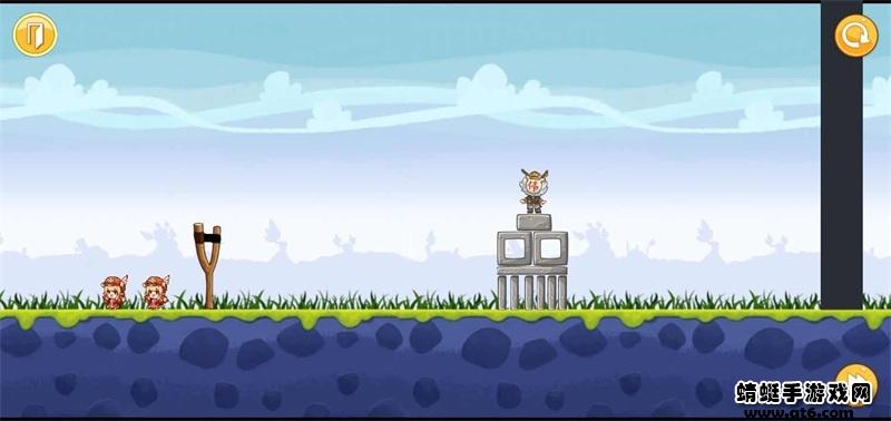 2.游戏操作很简单。你需要拉动左边的弹弓,然后攻击右边的娃娃。后面有障碍。