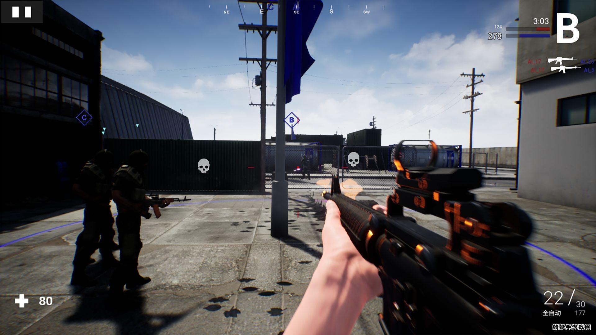 2、玩家扮演控制一名持枪战斗人员,选择自己喜好武器,在有限的时间里消灭敌人;