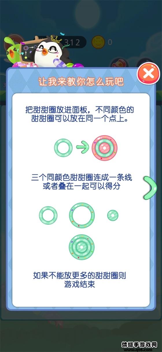 2、相同大小的甜甜圈完成一条线才可以进行消除,不同大小的甜甜圈可以进行堆叠。
