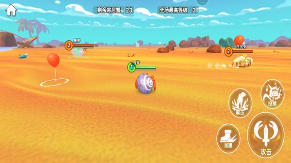 寄居蟹模拟战中玩家们在游戏中将操作不同的战斗战斗螃蟹来战斗,多样的螃蟹角色可以供玩家们进行选择,你需要给自己的螃蟹武装上更多的武装能力让角色变得更强,这样才能在和敌人的战斗中不断的获得胜利。