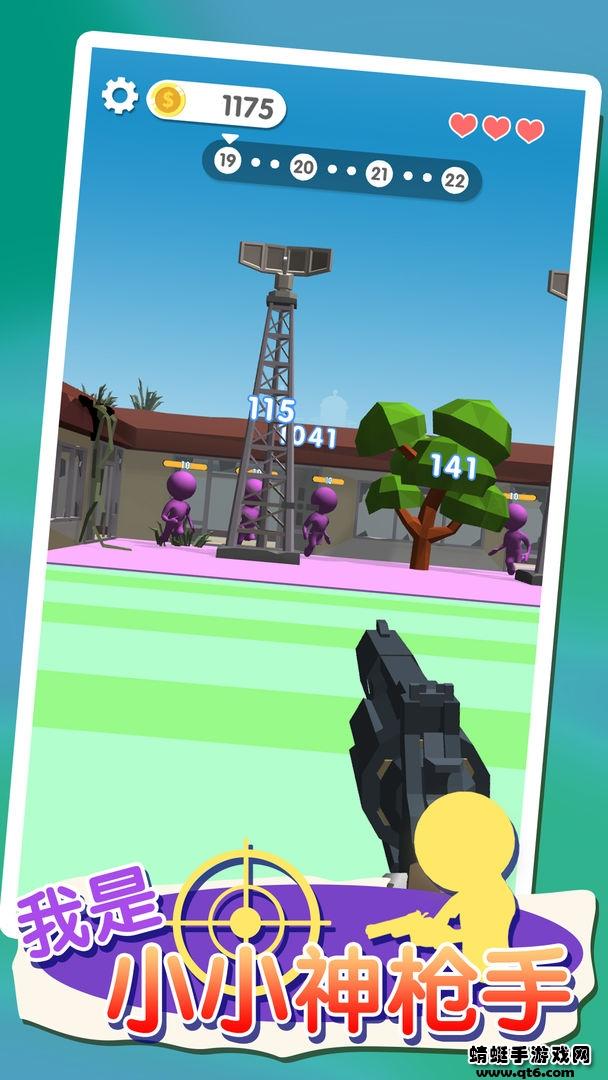 我是小小神枪手是一款新推出的射击闯关小游戏,游戏采用了简约的卡通风格,看上去给人一种小清新的视觉体验,玩法和操作比较简单,只需按下屏幕即可射击,你能成为真正的神枪手吗?快来挑战一下吧!