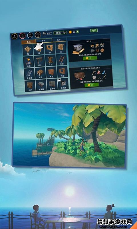 1、用收集的材料扩建木筏,发挥想象力造出不同的房间,只要功夫深,随便造个别墅或者小2层都没有问题哦!
