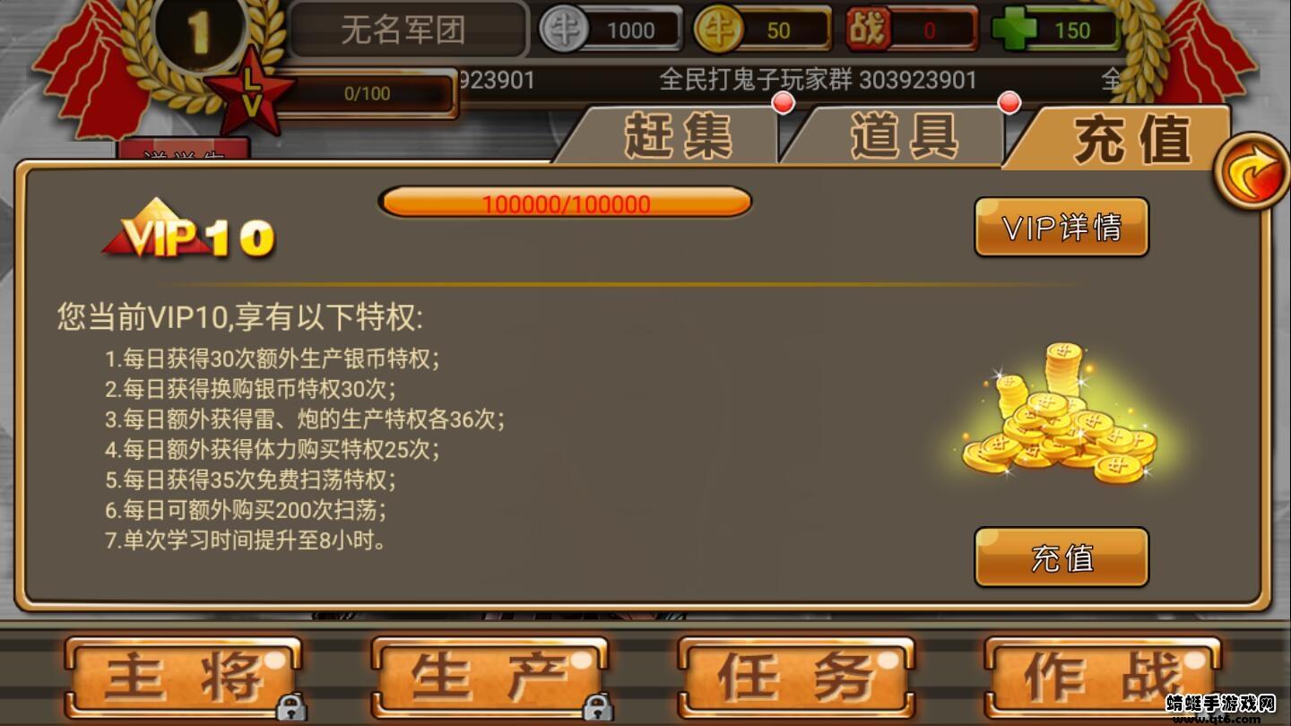 全民打鬼子游戏给大家破解成无条件使用金币,而且还有vip满级,这是一款射击战斗游戏,以打鬼子为特色,在这里您能够购置武器来消灭入侵的敌人,组建您的军团,提高战斗能力,保卫家园,赶走入侵的鬼子吧;