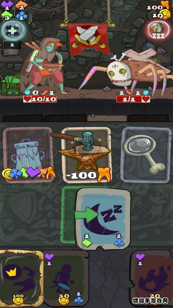 在房间里使用你的卡片,珍宝和经验。提升自己,没有敌人,动起来。把你的卡放进去让它更强。