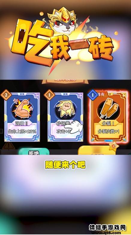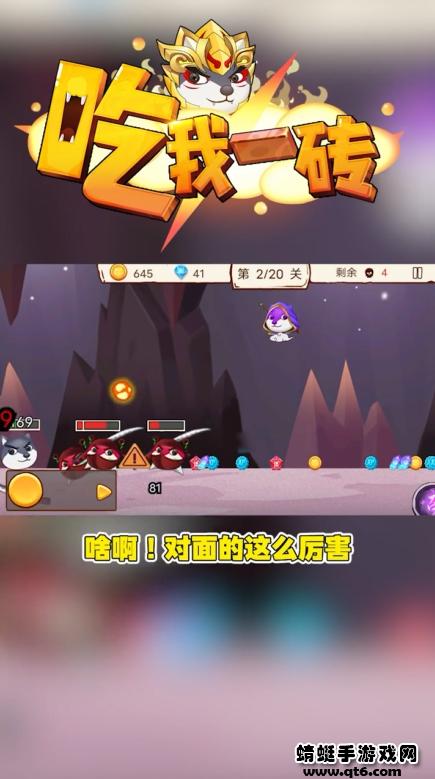 吃我一砖游戏中将我们大家所熟悉的表情包加入到了游戏里,你可以学习各种技能和强化各种武器给自己的狗头表情包勇士在不断的和战斗中获得更多的游戏奖励来强化自己的角色属性,超多的战斗和多样的选择进化都是游戏的魅力所在。