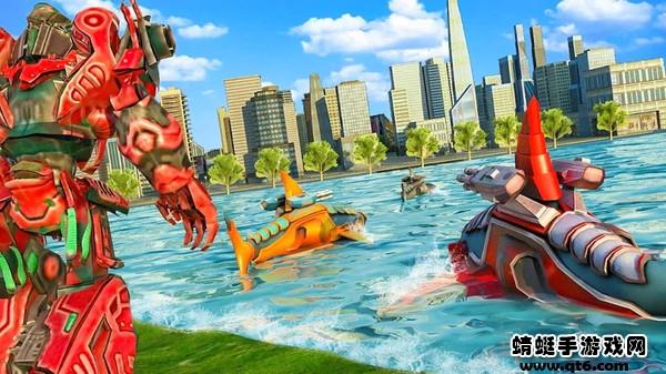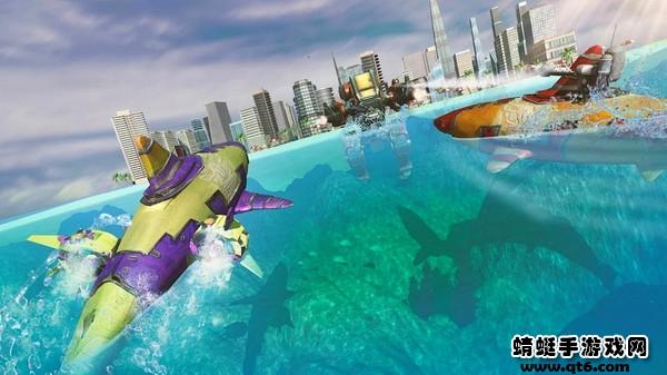 在游戏中,玩家将变身鲨鱼机器人,在城市中冒险。打开地图,城市和海洋供你探索,任务不仅限于城市,还有深海的神秘宝藏!?