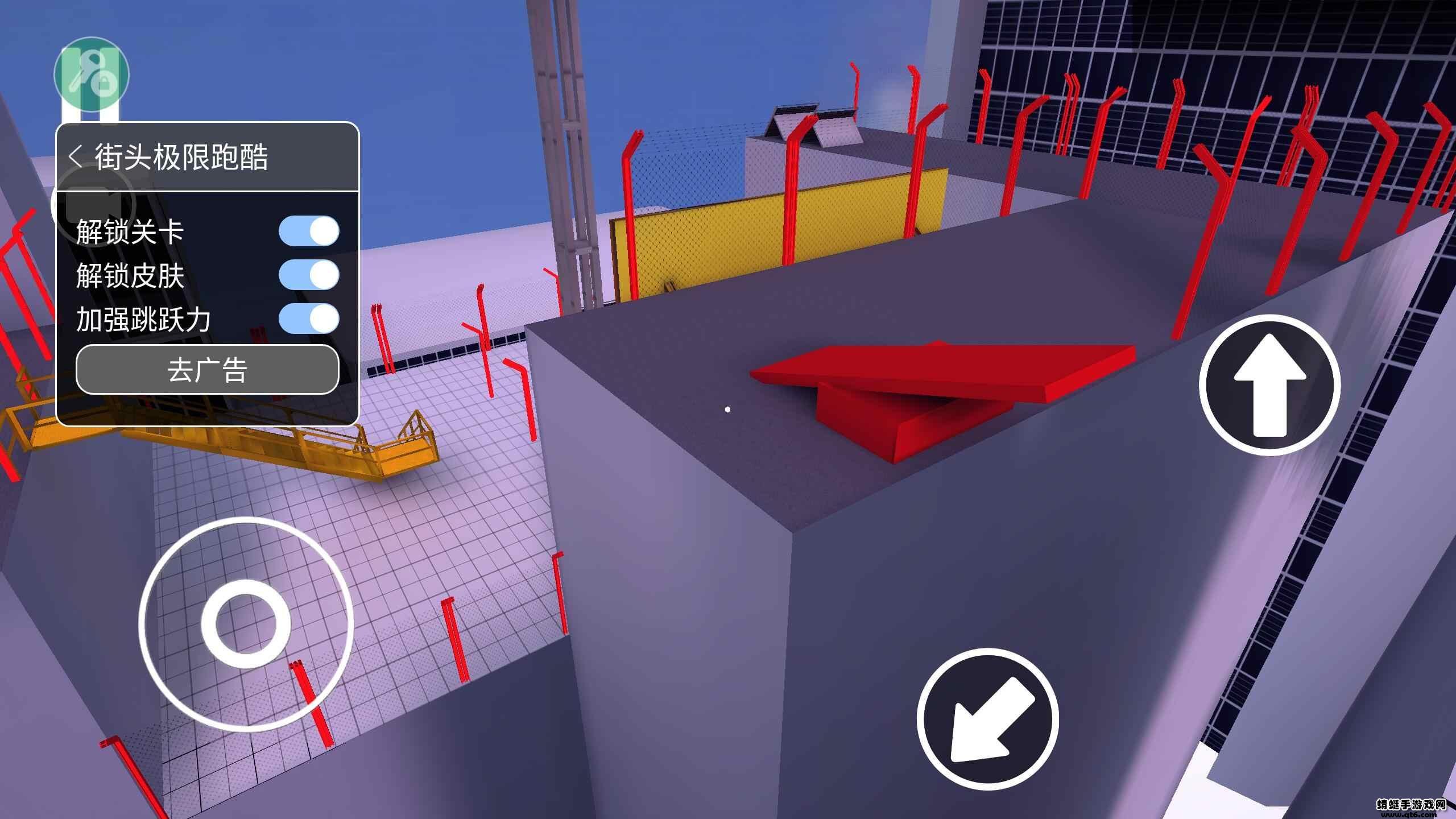 1.游戏采用3D视角,操作角色穿梭于高楼之间。