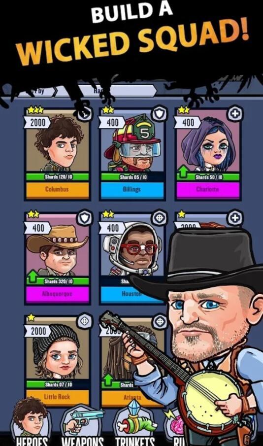 收集各种各样的英雄名单,包括僵尸世界独有的全新角色:双踢踏者和你最喜欢的电影-哥伦布,塔拉哈西,威奇托和小石城。