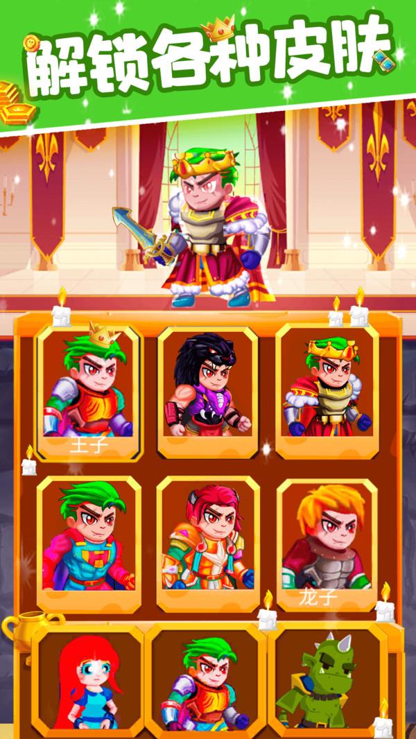 拯救公主骑士手游的画面非常的简单有趣,有趣好玩的卡通画面加上多样的战斗模式和闯关冒险是游戏的最大特色,你需要操作自己的骑士战胜眼前的所有对手才能顺利的拯救到公主,升级橘色属性能让你更好的闯关。