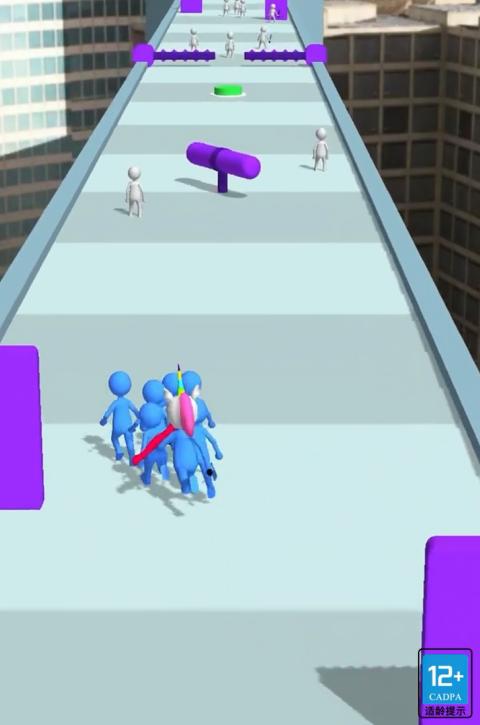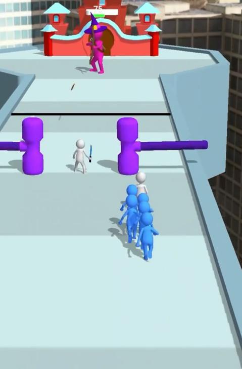 进击的小蓝人你将在游戏的关卡闯关的过程中在中途尽可能的避开沿途的关卡中的机关的同时收拢更多的蓝色小人为你所用,让你的战斗队伍可以变得更加丰富,这样你们才可以能在最终的终点和究极boss一战闯关成功。