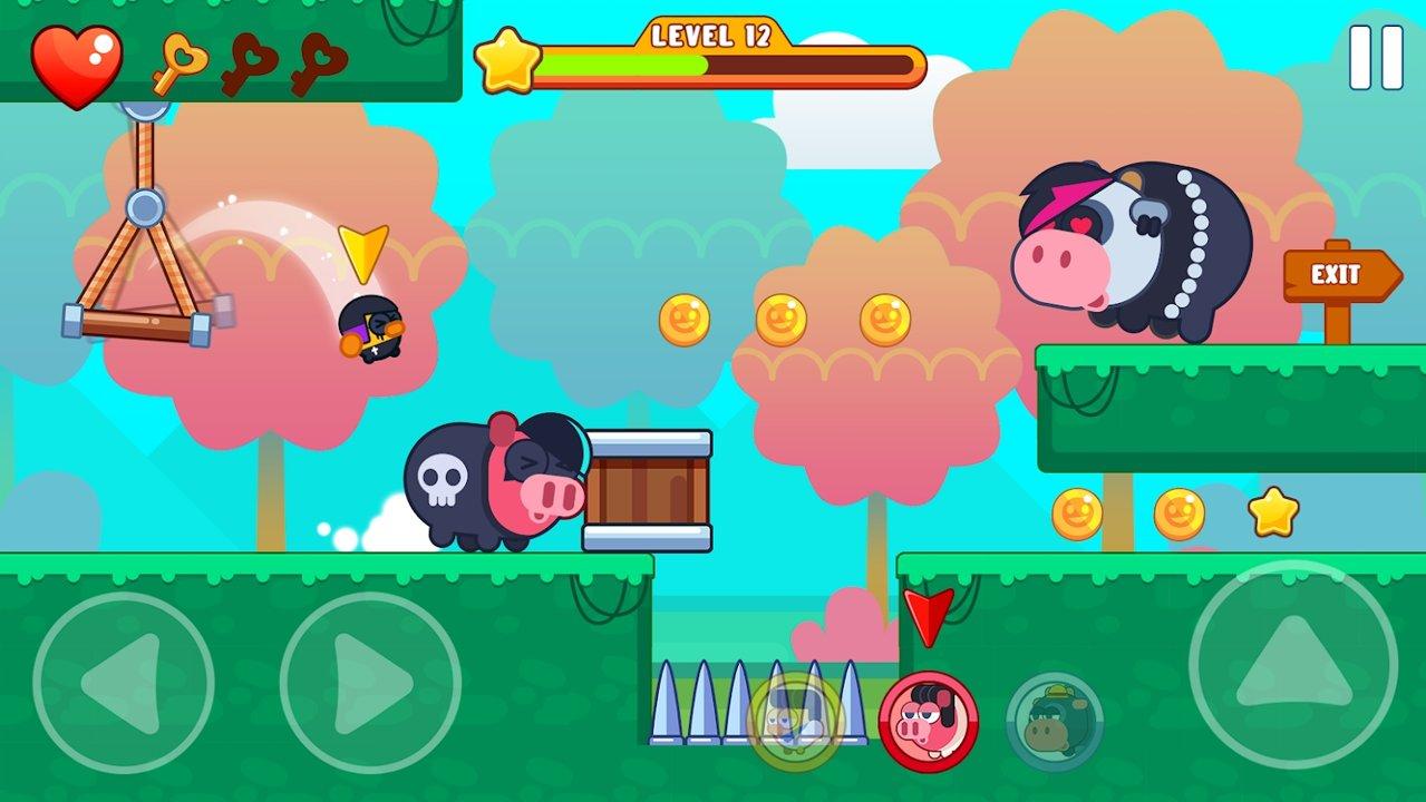 小猪冒险是一款平台冒险游戏,采用2D的风格,玩家要控制可爱的小猪在平台上冒险前进,帮助小猪躲避障碍机关,到达终点,很多不同的场景都可以挑战,可爱的小猪会让您感觉到开始,简单的操作让您很容易就能够学会玩;