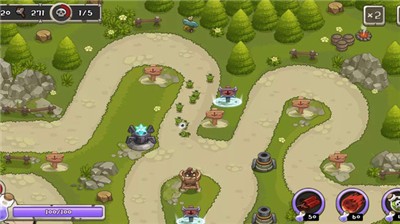 1、无止境的进行塔防的防御作战,玩法形式也跟保卫萝卜的操作极为相似,通过收集金币来为路线上进行塔防的建设;
