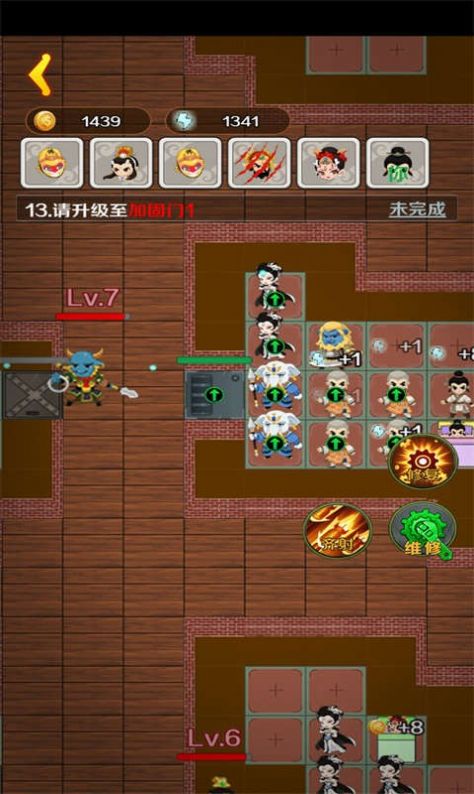 2、升级自己房间的门和武器来击退低等级的唐僧,随和时间流逝他会不断变强。