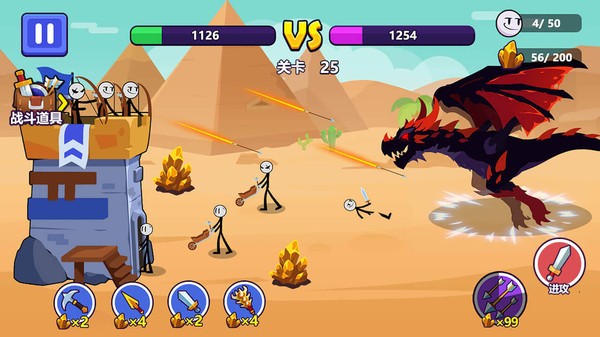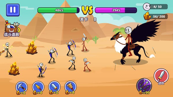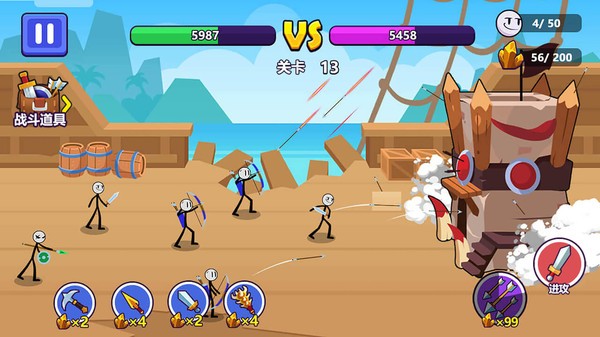 2、有许多令人兴奋的战斗供你参加,玩家需要带领火柴人团队击败所有对手。
