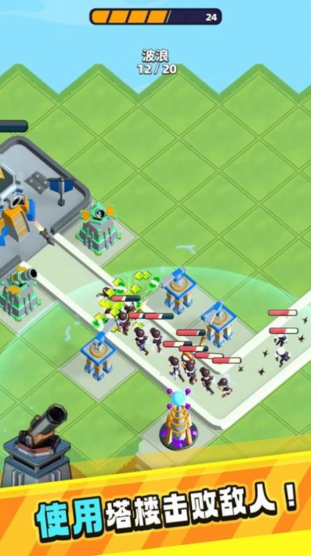 2.使用塔楼快速的去击败所有的敌人,也可以不断的去提高自己的攻击能力。