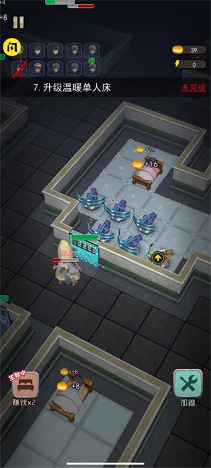 2、守护:玩家需要通过躺平睡眠来获取金币,从而建造各种不同的建筑物,让你能够获取更多的资源。