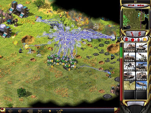 各国防御建筑(电极塔、地堡等)均能升级,升级后威力强大、且能发出好看的三级光,另外小兵、坦克、船队升级后也有此效果。