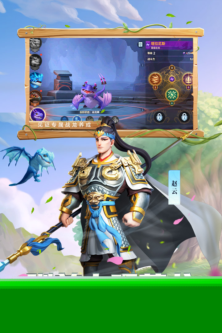 7种元素的巨龙沉睡于神秘的龙穴里,只有最勇敢的战士才能够唤醒他们。你可以获得史诗级龙蛋,孵化它,看着幼龙成长,兴奋吗?培养它们,神龙将为你而战!如果将巨龙匹配到与它相同元素的英灵队伍中,触发元素队伍的专属增益,助你力战!
