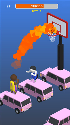 玩家只需要操控小人站在汽车车顶上,将篮球准确无误的投射到篮筐里面去即可;