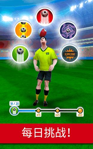2、在这里你能够玩出各种花式颠球,另外还游各种解锁的全新服装、秋衣、鞋、足球和有趣的头饰等等!