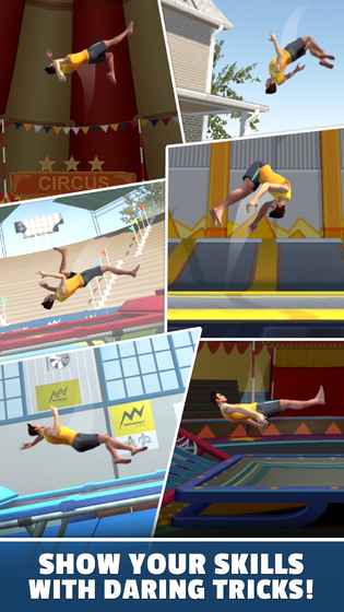 翻转大师是一休闲体育竞技类游戏,游戏以蹦床为主题,场景设计精致真实,翻转大师中,玩家可以选择不同的蹦床场景,解锁具有高难度系数的动作,获取金币,升级你的角色,成为蹦床大师。