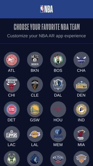 选择你最喜欢的球队来个性化你的NBA AR应用体验;