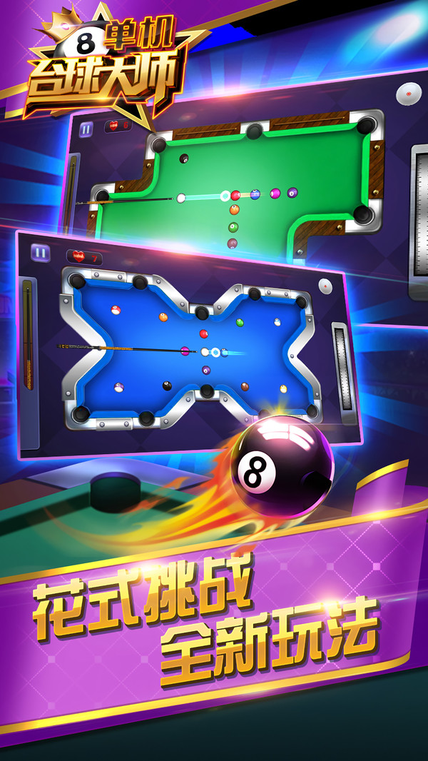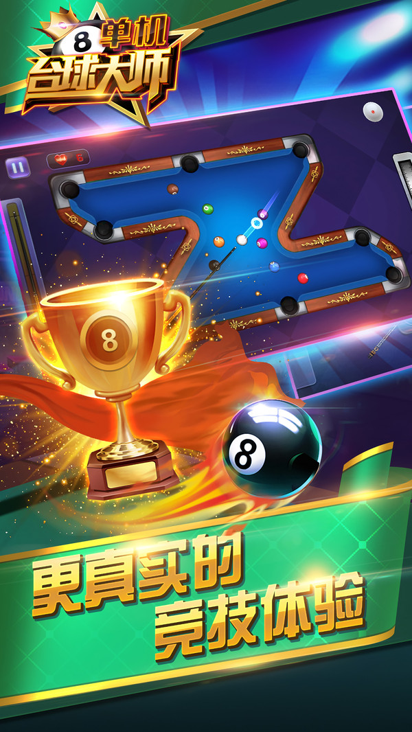 该游戏采用精美的3D技术,细节的调整每一个视角,精准的击球位置,完美还原台球的碰撞以及运动轨迹,给您小型VR台球的游戏体验,融合中式8球、开仑台球、斯诺克台球的核心玩法,不同于lol那种5V5团队对抗和绝地求生的沙盒竞技,这里你的战场只有一张球桌,世界台球联盟给你设置最有挑战性的对手,提高你的技艺,挑战最高成就,勇夺冠军,成为业界传奇,甚至还可以体验到纪念碑谷、祖玛等解谜游戏的快乐,让您体验到最经典的1V1台球对抗游戏。