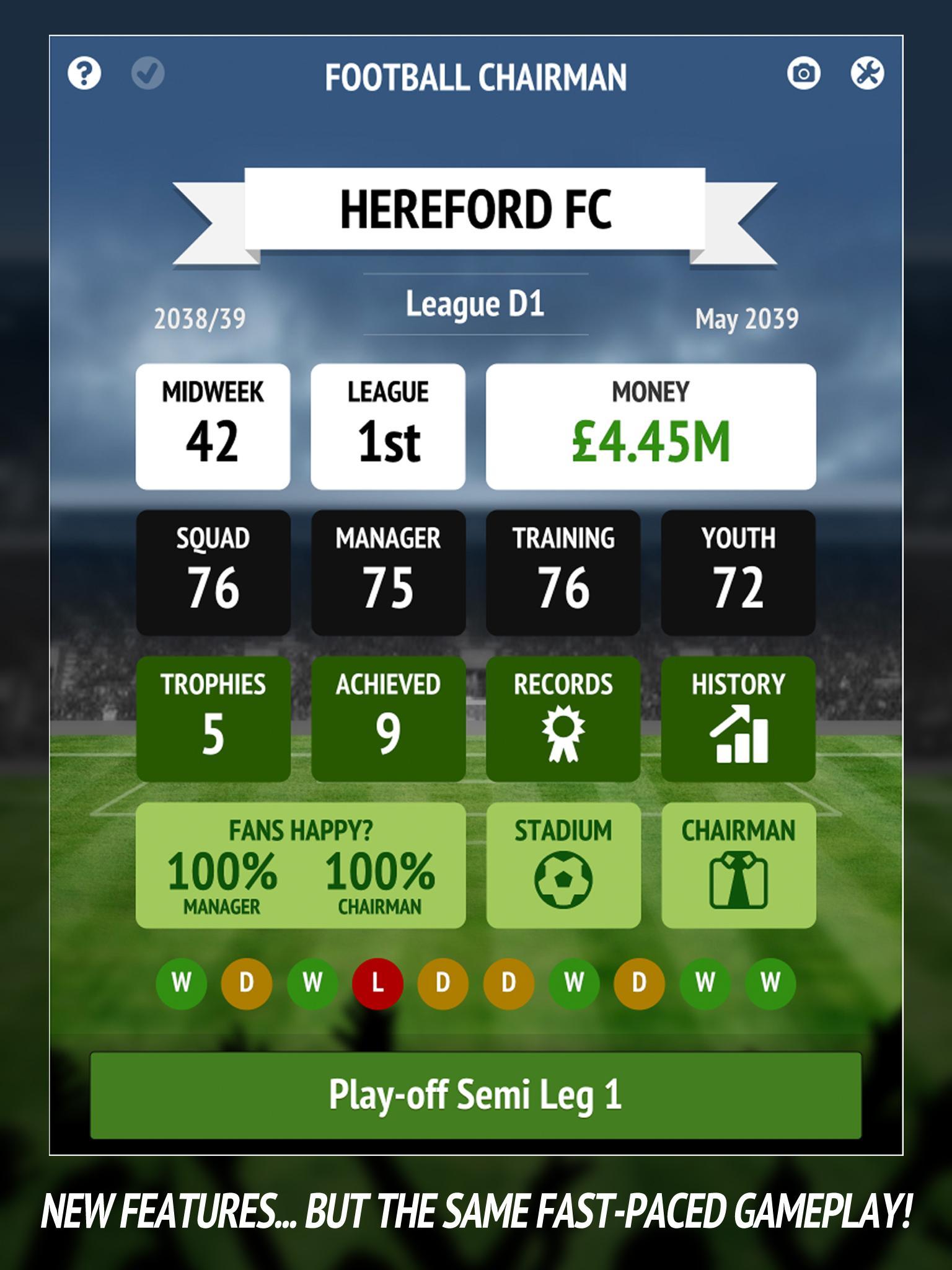 从头开始创建足球俱乐部,开始作为一个小的非联赛球队,看看你是否可以通过七个部门使其到达顶级。
