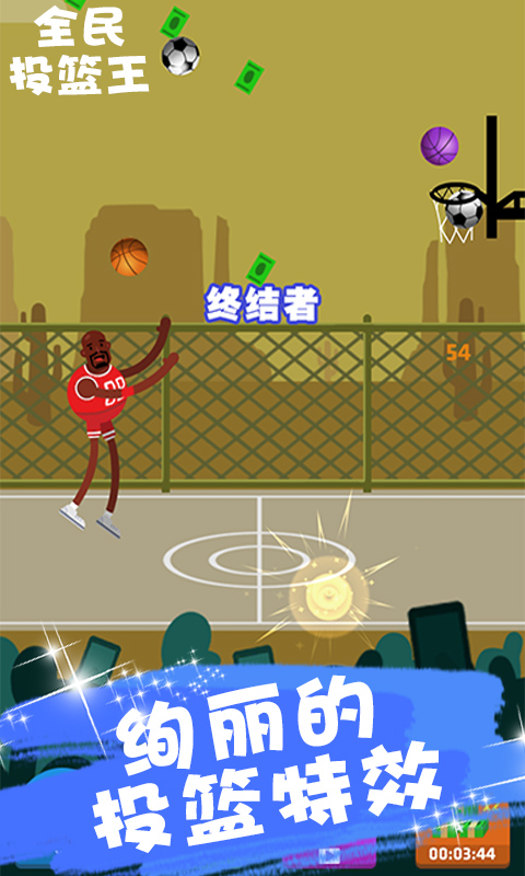 全民投篮王手机版是一款动作竞技游戏,游戏中的篮球供玩家随意解锁手持着与对手一同比赛尤其是在投球的时候跳跃的过度和扔球的方向和力度是非常关键的,虽然篮球的颜色发生着改变不过是不会影响玩家投球的只要投球的次数越多就能找准投球的感觉。