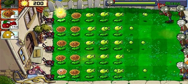 4、在这个版本中不仅保留了植物与僵尸搞怪原型,同时对游戏场景进行了加大、精细地处理。
