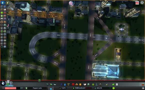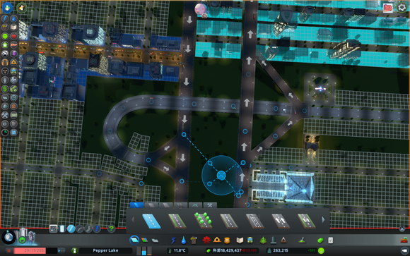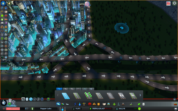 看了大神的分享,学习到这种超实用的立交桥。这种立交最实用的,简单、美观、占地小,流量也不低,在不用MOD不考虑造景时的最佳选择。