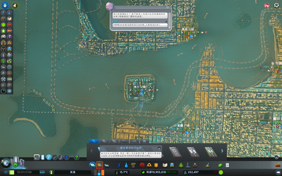 所以思路一变就简单了:用最快速度发展人口,解锁避难所和灾难应急中心。避难所一开,就近在人口聚集区安置,洪水来前把人转移进去,失败条件只要人口不为零就不会输。灾难应急中心修在高地,平常关闭即可。