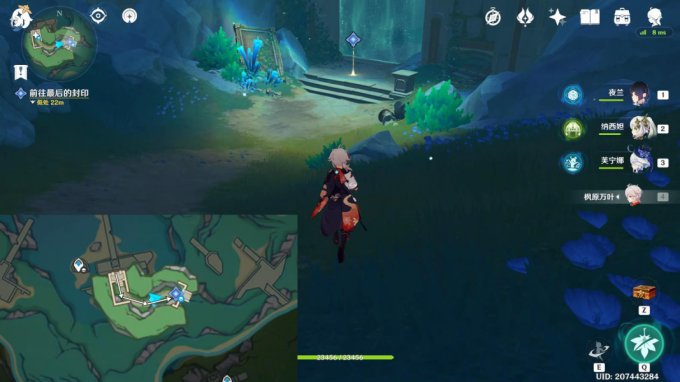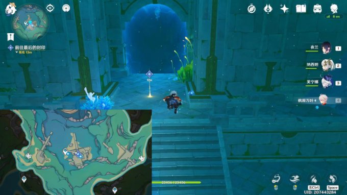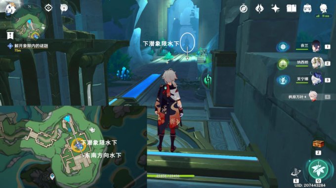 传送秋分山东侧东方向水下锚点,前往遗迹门口