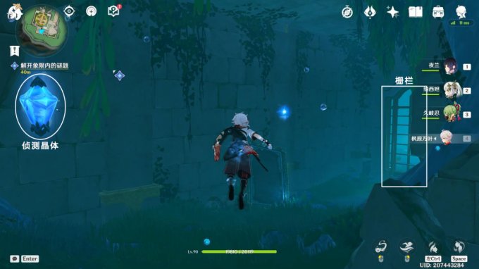 攻击1次侦测晶体(蓝-黄),打开栅栏