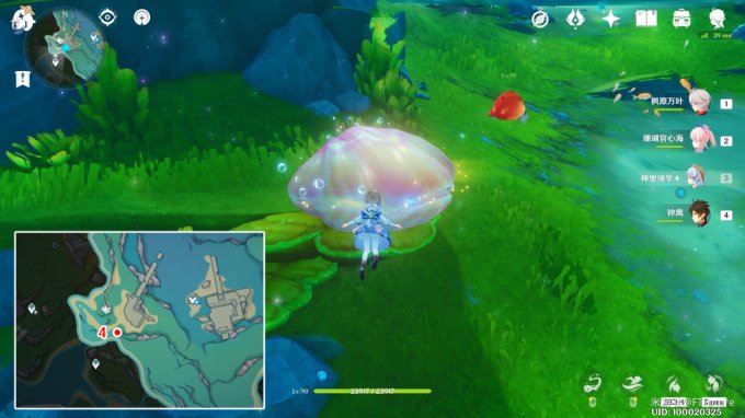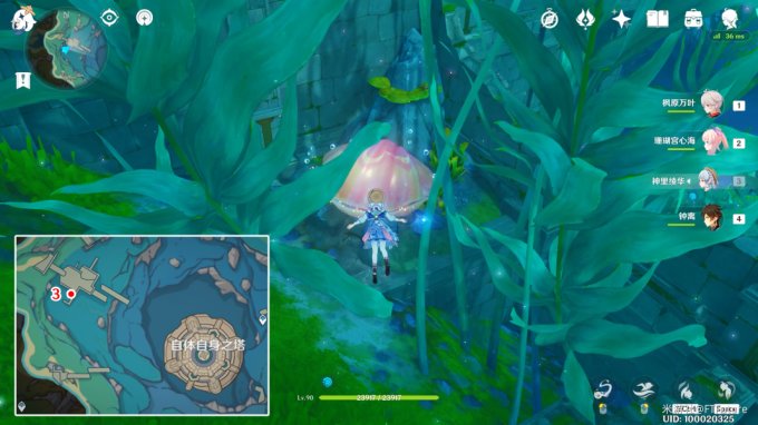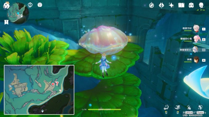 藏宝图:位于「万水之源·大枫丹湖」下图所示位置的贝壳中,使用普通攻击将贝壳敲开。拾取里面的瓶子,即可获得藏宝图「帕克的期冀」。