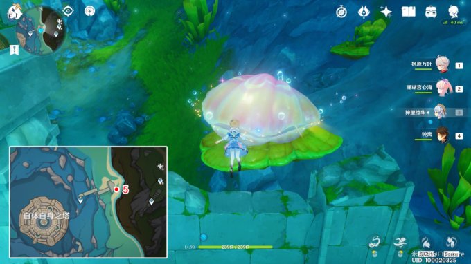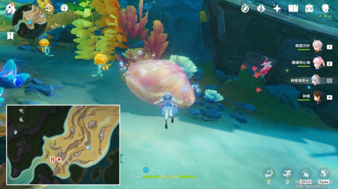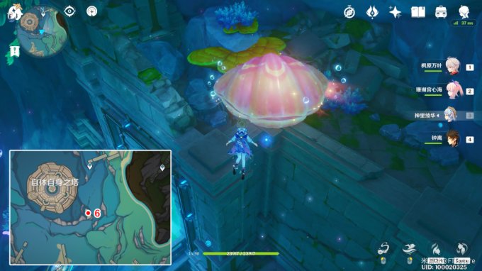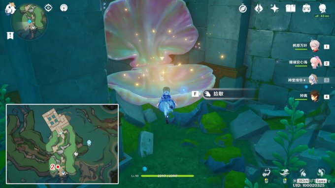 藏宝图:位于「万水之源·大枫丹湖」下图所示位置的贝壳中,但贝壳前面有透明屏障阻挡,需要绕到后面。