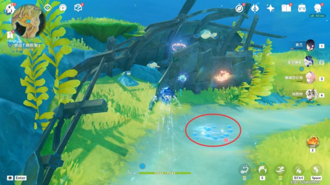 7,然后回水下跟着这团小鱼,整体路线如图。