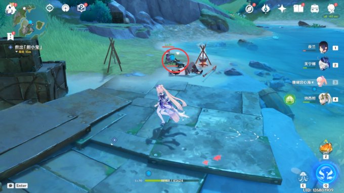 11,来到此处需要找到一把钥匙救出胆小鬼,钥匙位于岸上盗宝团营地