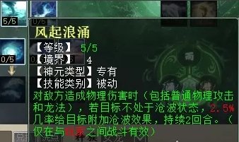 这一排技能和扶摇类似,就选第一个“搏浪击涛”和第三个“暗流汹涌”。