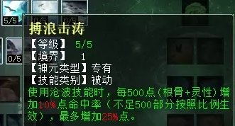 分别是:搏浪击涛(任务、PK通用,根骨与灵性之和可增加沧波命中率),海天一色(任务、PK通用,4法沧波可延长状态1回合),暗流汹涌(任务、PK通用,提升沧波伤害)