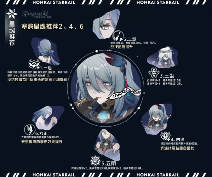 星魂1则是在我方终结技受益目标击杀时,寒鸦获得行动提前的效果,提升技能循环协助产点;