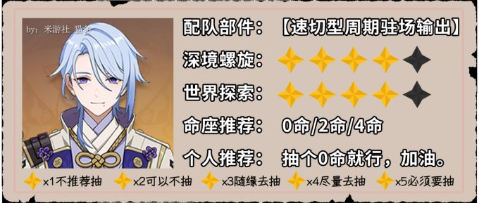 ·神里绫人的定位是水属性速切/周期驻场输出角色。