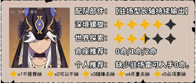 2.新人萌新如果非个人XP爱好影响,不推荐优先抽取赛诺。替换其他挂雷角色,或者干脆变体系/改定位,把驻场雷换成后台雷也是可以的。