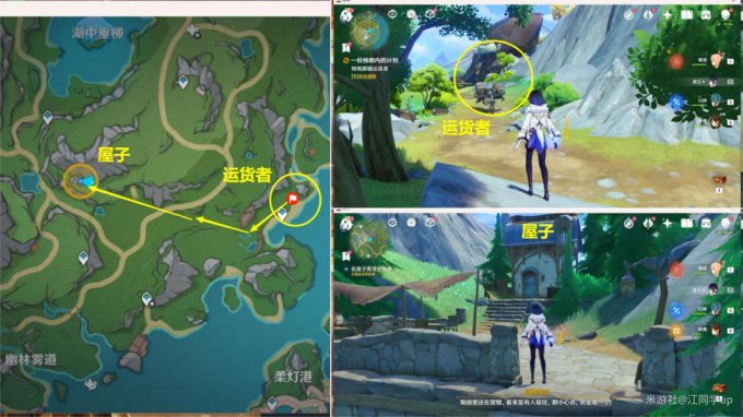 (9)完成上面推理解密后,会直接自动传送到下图【运货者】位置,然后一路跟着【运货者】,远一点跟着就行,不要被发现了,最终需要一直到下图【屋子】位置任务点